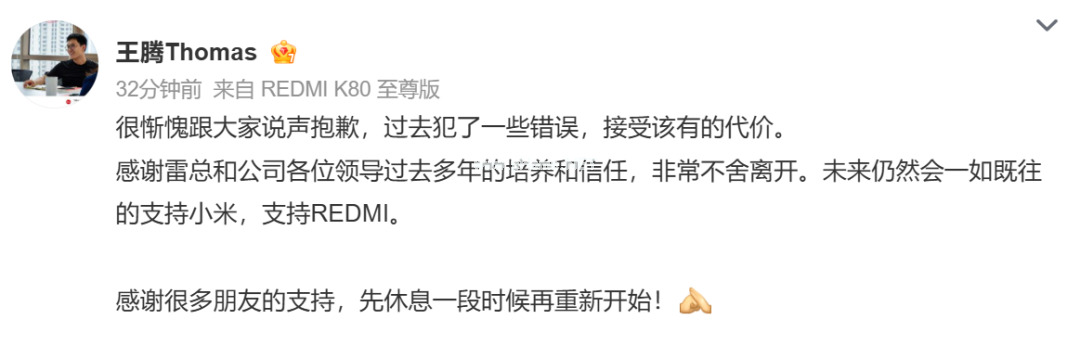 小米惊爆大瓜!王腾被辞退 回应来了