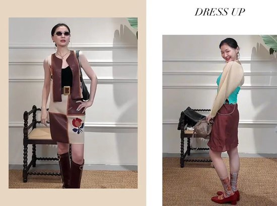 这次在“西班牙旅行”的分享中,金靖不仅大胆地用各种材质进行混搭,比如将硬朗质感的皮革和柔和轻软的雪纺、针织搭配在一起,通过材质的混合打造丰富的视觉效果。她还会巧妙地用色彩来凸显“活人感”,比如在运用同色系搭配保证整体协调统一的前提下,再用撞色带来强烈的视觉冲击。