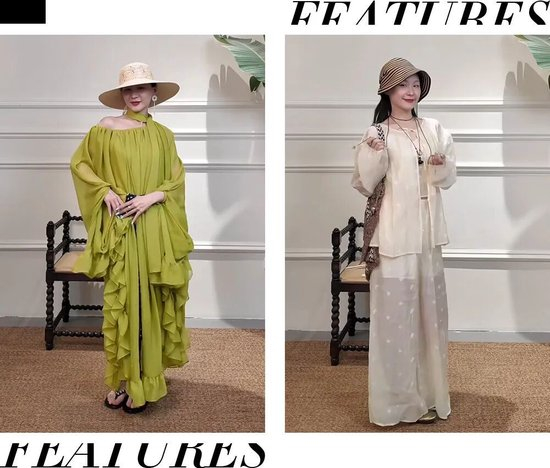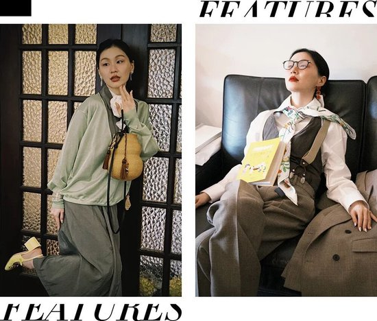 宽松设计给予身体足够舒展的活动空间,亲肤的棉麻、丝绸等面料就算仅仅贴合身体,也不会有任何不适。她与之搭配的配饰也足够灵动,葫芦包、丝巾、飘带等都突出一个“轻”,为身体留出“呼吸感”。