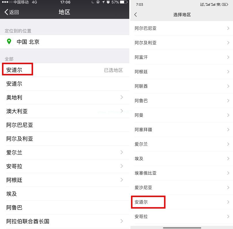 很多人在注册微信的时候,没在列表中翻找自己真正的所在地,微信就默认选择了排在第一的安道尔。