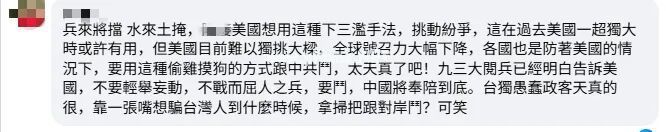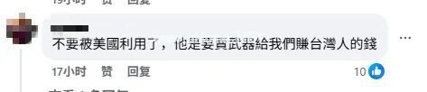 在社交媒体上相关新闻报道的评论区内,台湾网民对民进党当局的批评声音也屡见不鲜:“不要被美国利用了,他是要卖武器给我们赚台湾人的钱”“出卖之前想制造一波紧张抬高价钱,惯用伎俩了”……