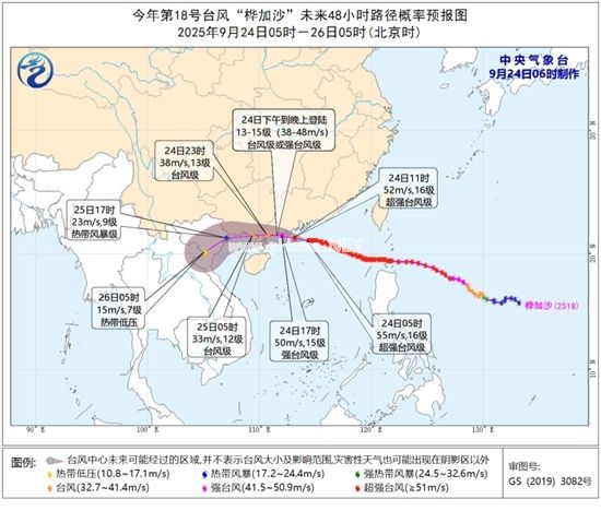中国天气网讯 今天(9月24日),今年第18号台风“桦加沙”将登陆广东沿海,可能为今年来登陆我国的最强台风。受其影响,华南、华东多地雨势猛烈,今天为台风雨最强时段,广东局地或遭遇特大暴雨,明天强降雨核心区将转移至广西等地,公众需注意防范强降雨可能引发的各类次生灾害,同时警惕风暴潮叠加天文大潮可能引发沿海地区出现海水倒灌。