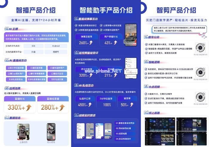 易慧通平台以易车全栈自研的汽车行业大模型为关键技术底座,核心赋能汽车行业客户。其提供的智播、智能助手、智剪等系列企业级AI应用产品,支持AI无人直播、直播间弹幕互动、AI私信互动、智能短视频创作等功能,能精准适配汽车行业客户多场景传播需求,可显著提高新媒体营销内容的互动与转化效率。