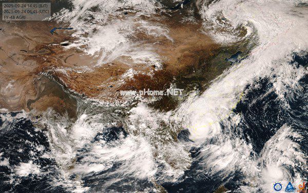 ↑云图上看,北方的冷涡引导冷空气南下,导致台风云系和冷空气云系都连接起来。