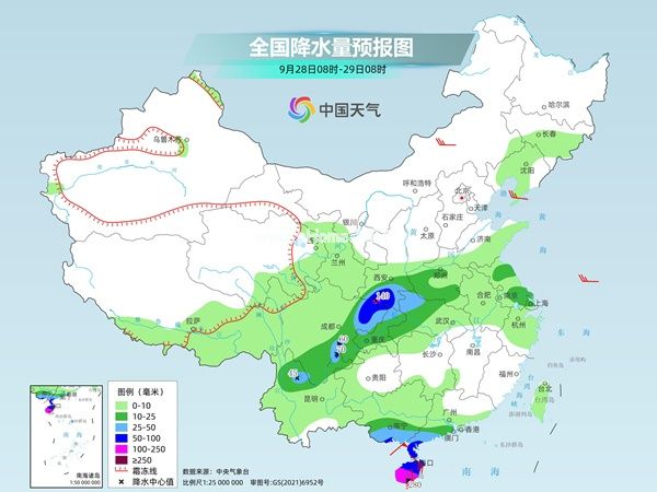 后天,西北地区东南部、四川东部、云南北部、广西东南部沿海、广东西南部沿海、海南岛等地部分地区有大到暴雨,其中,陕西南部、海南岛中南部等地部分地区有大暴雨,局地有特大暴雨。
