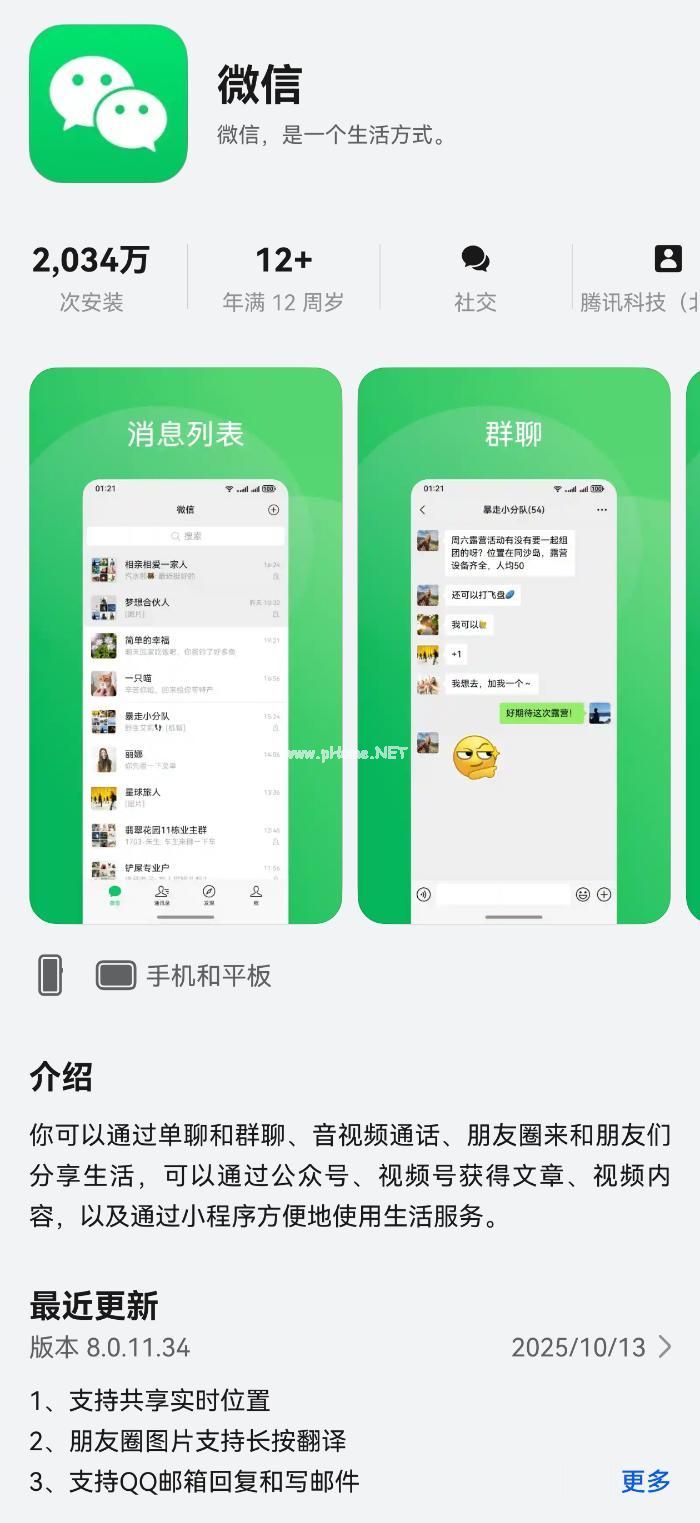 近日,鸿蒙版微信新版本正式上架,版本号由1.0迭代为8.0。新版本支持用户呼声很高的共享实时位置功能,同时,朋友圈图片长按翻译、QQ邮箱回复和写邮件、公众号文章听全文等功能也已同步上线。本次更新后,鸿蒙版微信的使用体验进一步完善。目前,鸿蒙版微信的安装量已突破2000万,且仍在快速增长。